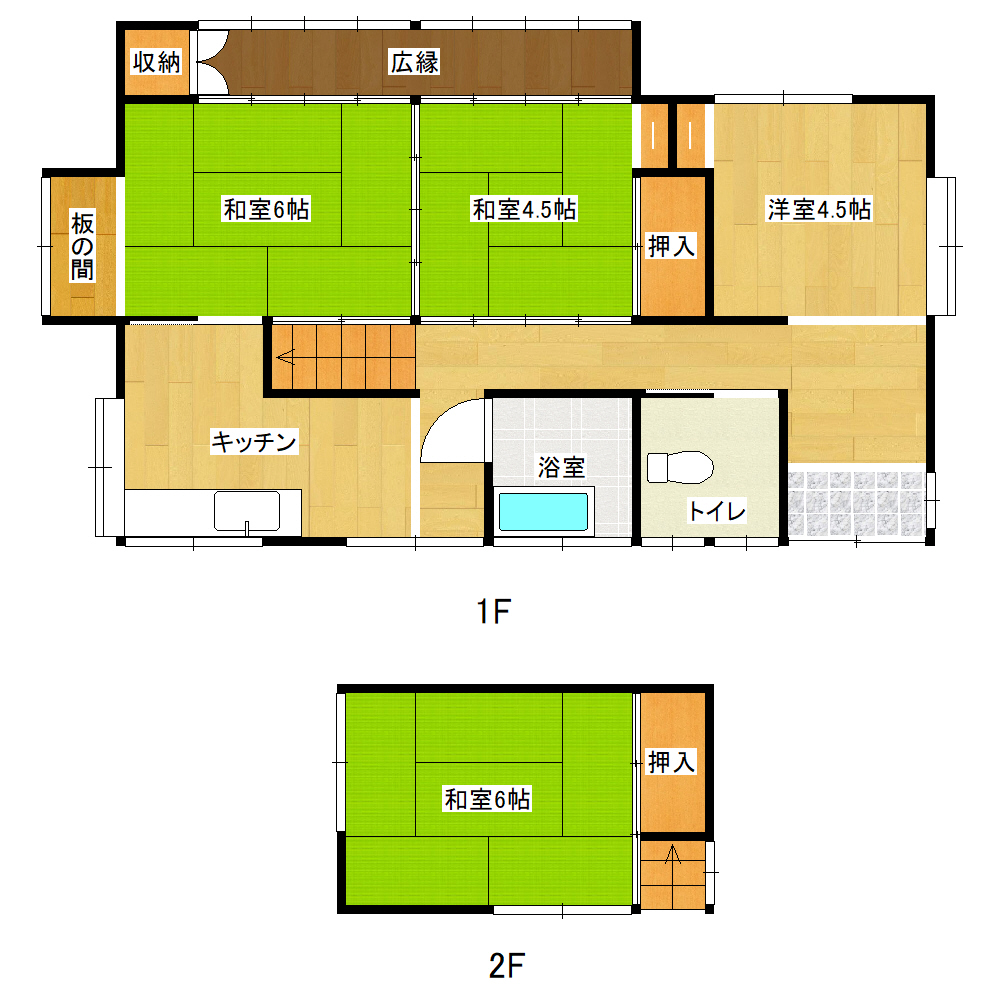 1F:和6帖 和4.5帖 洋4.5帖 DK 2F:和6帖